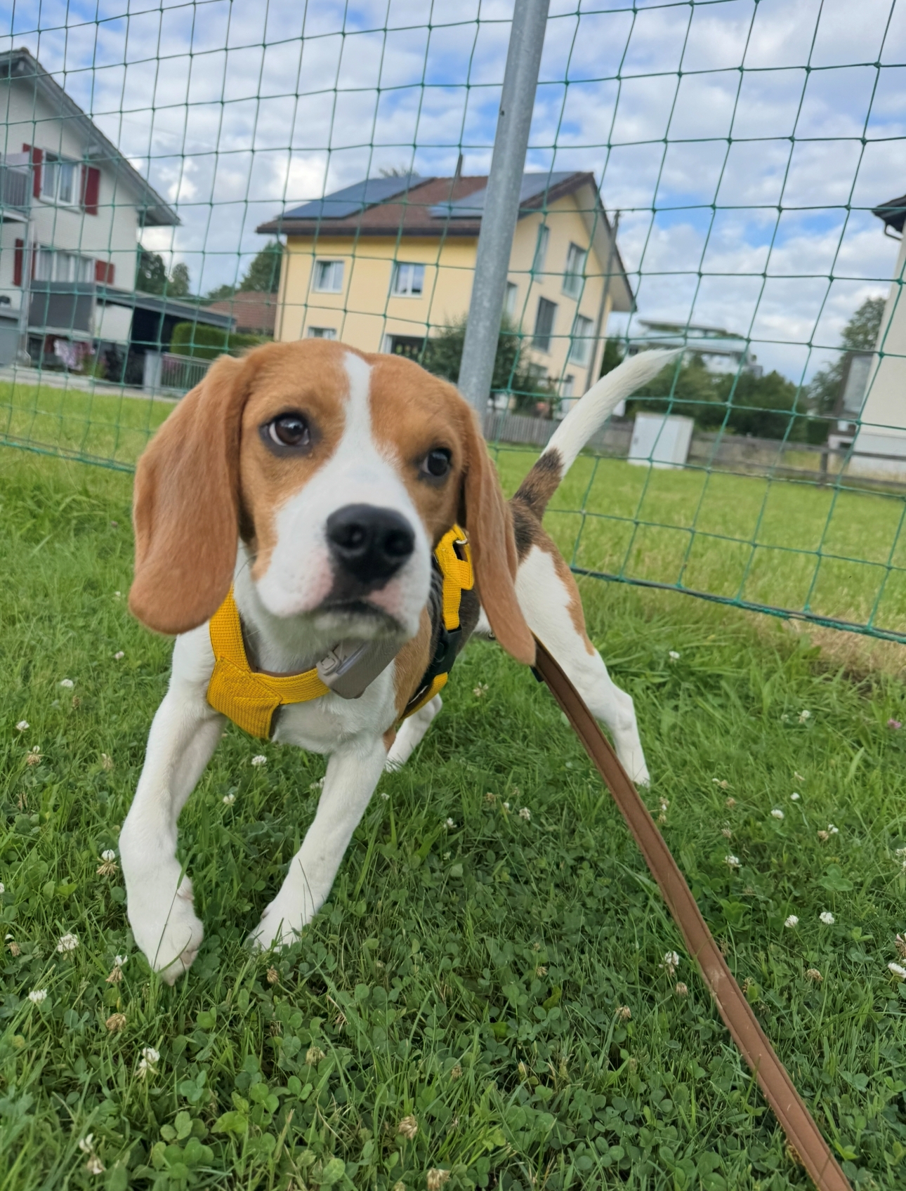 Loui ist herzig, verspielt und hat einen starken Charakter.Er kann Sitz, Platz und Pfote und liebt es, draussen unterwegs zu sein.